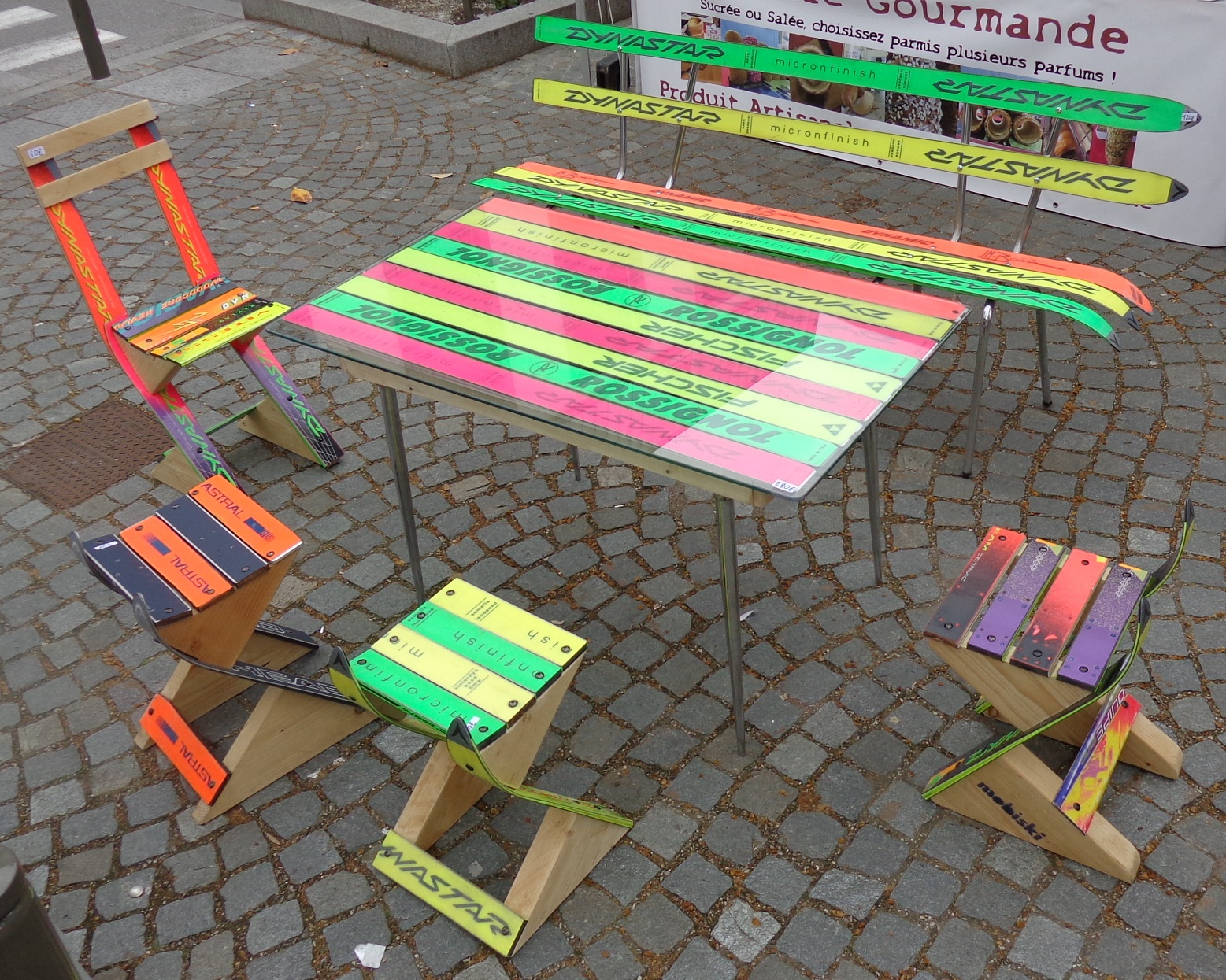 Chaque année en France, ce sont 800 000 skis et snowboards qui pour la plupart ne reverront plus jamais la neige et finissent souvent brûlés… ce qui est particulièrement polluant notamment à cause de leur structure composite. Il existe actuellement une filière de recyclage en Savoie qui collecte les skis en fin de vie pour les séparer après broyage en une partie recyclable (les métaux) et une partie incinérable (combustible pour cimenterie) mais cette solution n’est pas pertinente et insuffisante. Art Ski Tech basée à Chambéry a eu une autre idée : upcycler les skis ! Il s’agit d’une association de préfiguration à une future Société Coopérative d’Intérêt Collectif (SCIC), coopérative démocratique permettant le « multisociétariat ». Ainsi des savoyards venus d’horizons professionnels variés mais tous concernés par l’écologie et le social se sont associés et ont mis leur différent savoir-faire en commun pour réaliser cette belle idée que de transformer les vieux skis. La collecte se fait auprès des particuliers comme des structures de récupération ou directement des fabricants. Leur gamme est en cours d’élaboration et va certainement s’enrichir dans l’avenir mais d’ores et déjà on trouve des dômes géodésiques, du matériel de communication, du beau mobilier et des objets divers et variés… ils sont preneurs de vos idées et vous pouvez même créer avec eux vos propres réalisations. Voilà encore une innovation inspirante et créative ou comment réduire l’impact de cette pratique sportive tellement appréciée en faisant du beau et même de l’utile. Alors c’est fini on ne jette plus nos skis 😉